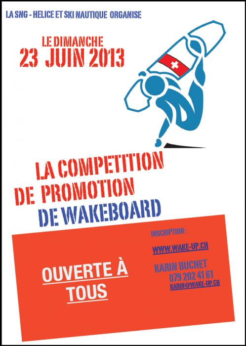 Les samedi 22 et dimanche 23 juin 2013, Fête du Wakeboard à Genève ! 2 compétitions de wakeboard homologuées et donc 2 chances pour les riders d'avancer dans la ranking-list nationale suisse :